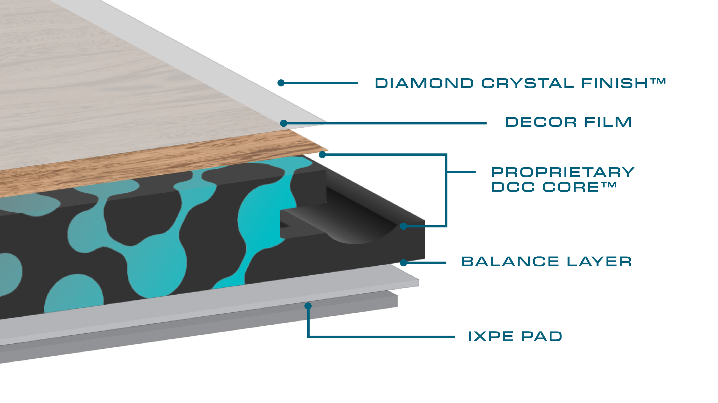 The Diamond Difference begins at the core. Our flooring is engineered with advanced structural technology that enhances stability, durability, and long-term performance. Each plank is designed to deliver waterproof protection, scratch resistance, and dimensional strength for today’s demanding environments.
